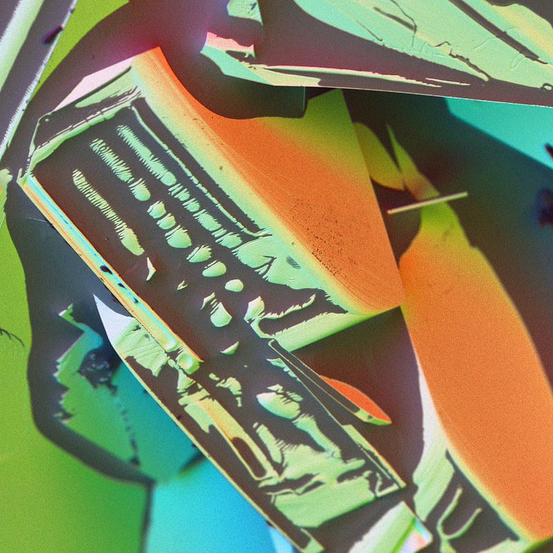 Aluminum (Al) crystals taken from a metal evaporator and imaged with a scanning electron microscope. Color applied via the multi-detector color method. Colorized by Eric Miller.